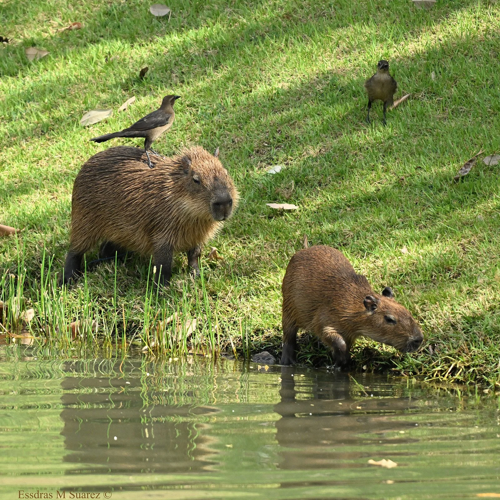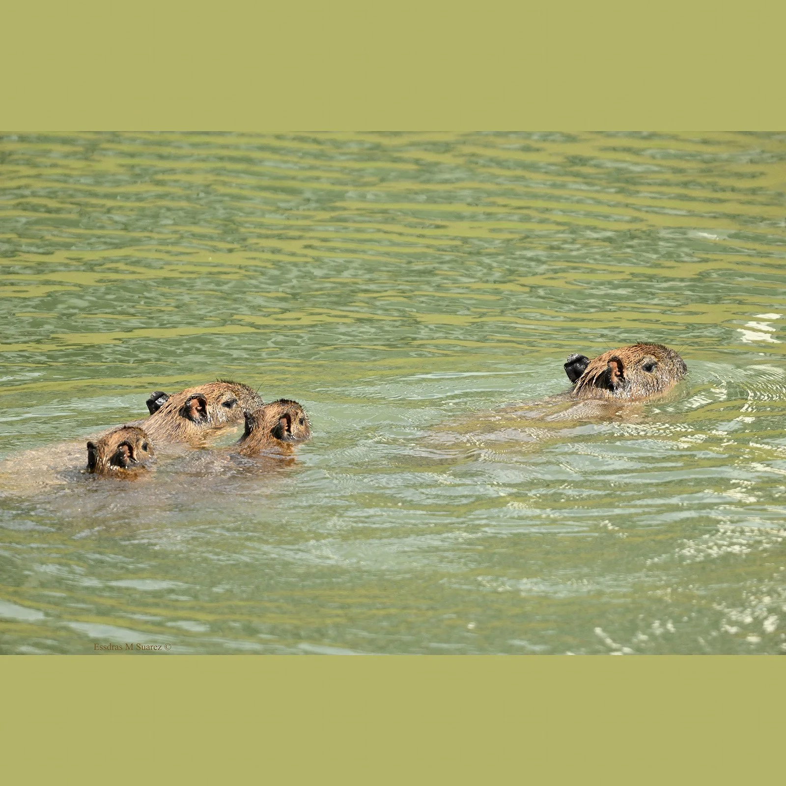 Los capibaras no entienden de vida solitaria. Son gregarios por instinto y se congregan en grupos que fácilmente alcanzan entre 10 y 20 individuos, una tropa compacta que se desplaza entre agua y césped con disciplina silenciosa. Viven en comunidad, se alertan ante cualquier peligro y protegen a sus crías entre todos. No son agresivos; simplemente están en lo suyo. Pero si alguien se acerca demasiado para tomarse un selfie, lo más probable es que la tropa entera se zambulla de inmediato hacia la seguridad del agua y se aleje de sus admiradores. Y mientras el sol cae sobre los lagos artificiales de un barrio exclusivo, queda claro que la verdadera historia no es la urbanización... sino la capacidad silenciosa de la naturaleza para resistir y adaptarse.