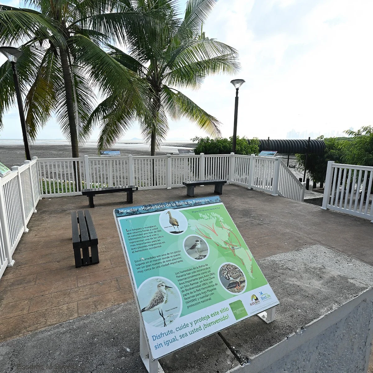 Al final del puente marino del Corredor Sur, entrando a Costa del Este por el Paseo del Mar y justo después del puente sobre el río Matías Hernández, se esconde una joya que muchos pasan por alto: el Mirador de los Humedales de la Bahía de Panamá. Este punto, discreto pero poderoso, es en realidad un punto de acceso a la parte alta de la Bahía de Panamá, uno de los sistemas de humedales más importantes del continente. Según eBird, aquí se han registrado más de 300 especies de aves. No es casualidad: la Sociedad Audubon de Panamá y organismos internacionales han reconocido esta zona como un sitio clave para aves migratorias a nivel hemisférico. Para un lugar tan accesible, eso no es común... es extraordinario.